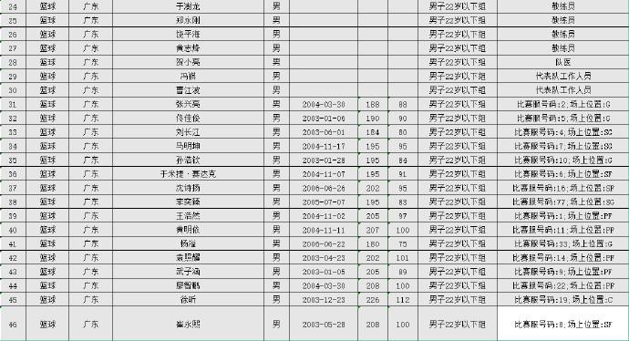 崔永熙则出现在了广东男篮男子22岁以下组中。