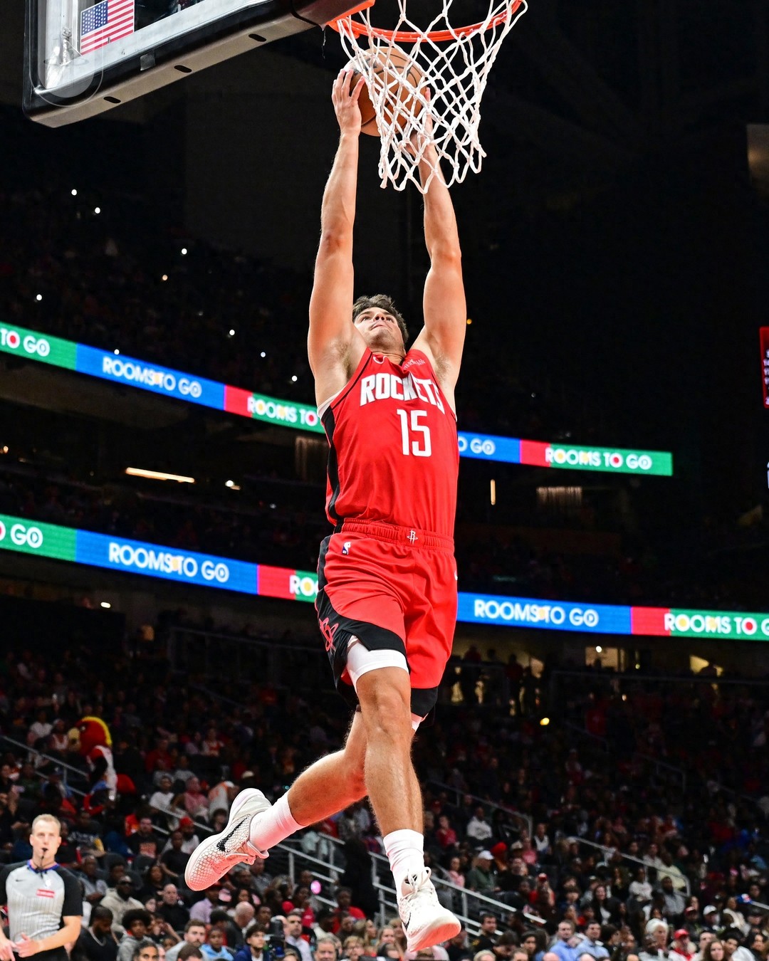杜兰特、申京、伊森、贾巴里-史密斯、阿门-汤普森、卡佩拉、亚当斯等人集体缺阵。谢泼德抢断扣篮,奥科吉大爆发,个人早早得到10分,帮助火箭14-7开局。里萨谢扣篮,快攻,帮助老鹰扳平比分。谢泼德连进中距离、三分,他和奥科吉、阿隆-霍勒迪首节包办28分,火箭31-27领先结束。第二节里萨谢、波尔津吉斯两人内外开花,肯纳德命中三分,老鹰反超比分。谢泼德再次爆发,早早得到18分。但节末里萨谢、波尔津吉斯扣篮,老鹰半场61-60夺回优势。