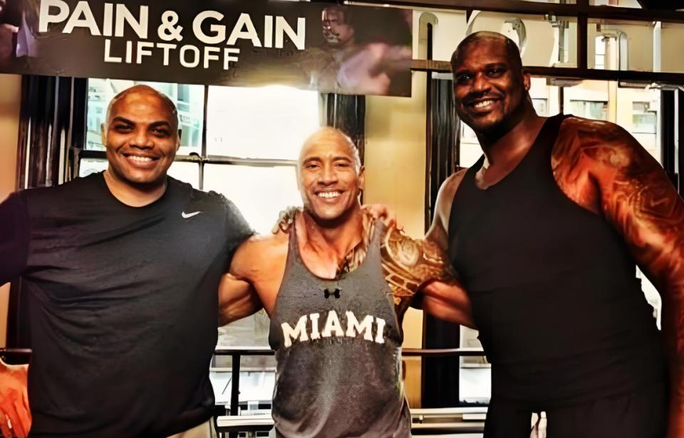 强森很多人都不陌生,他可是好莱坞硬汉专业户,1米9身高的他一身腱子肉,身材比一些NBA后卫都强壮。只可惜他遇到了奥尼尔,这身肌肉算是白练了。在奥尼尔身边,“巨石”强森立马变得小鸟依人,“巨石”也变成了“鹅卵石”。