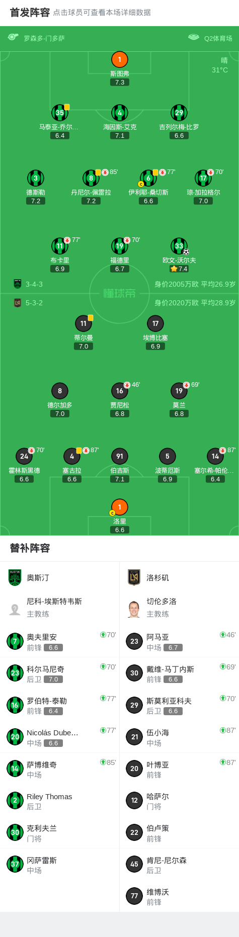 北京时间10月13日,美国职业足球大联盟常规赛展开较量,奥斯汀坐镇主场迎战洛杉矶。比赛中,奥斯汀球员欧文-沃尔夫攻入全场唯一进球,帮助球队取得领先。凭借此球,奥斯汀以1-0战胜对手,全取三分。精彩瞬间第83分钟,奥斯汀球员欧文-沃尔夫打入一球。球队阵容技术统计