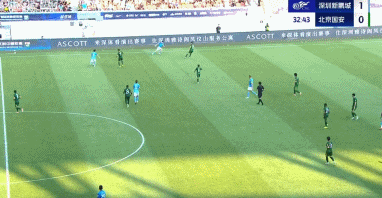 第33分钟,埃杜-加西亚传中,韦斯利门前推射得手,新鹏城2-0领先国安