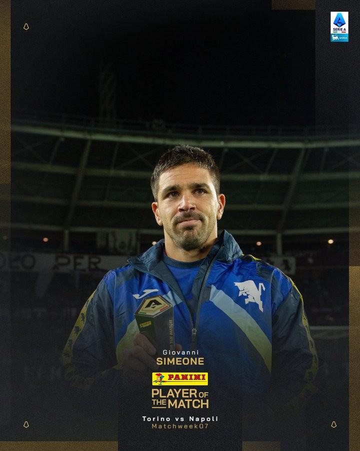 北京时间10月19日,在意甲第7轮的比赛中,乔瓦尼-西蒙尼面对旧主打进的全场唯一进球帮助都灵在主场1-0爆冷击败了卫冕冠军那不勒斯,赛后这位阿根廷射手也被意甲官方评为了本场比赛的最佳球员。