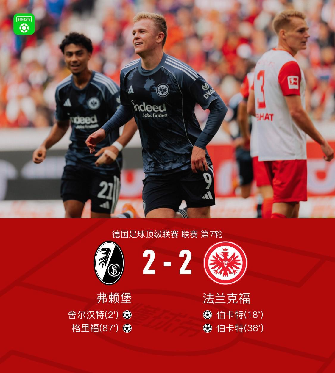 弗赖堡2-2法兰克福,格里福任意球绝平,伯卡特梅开二度
