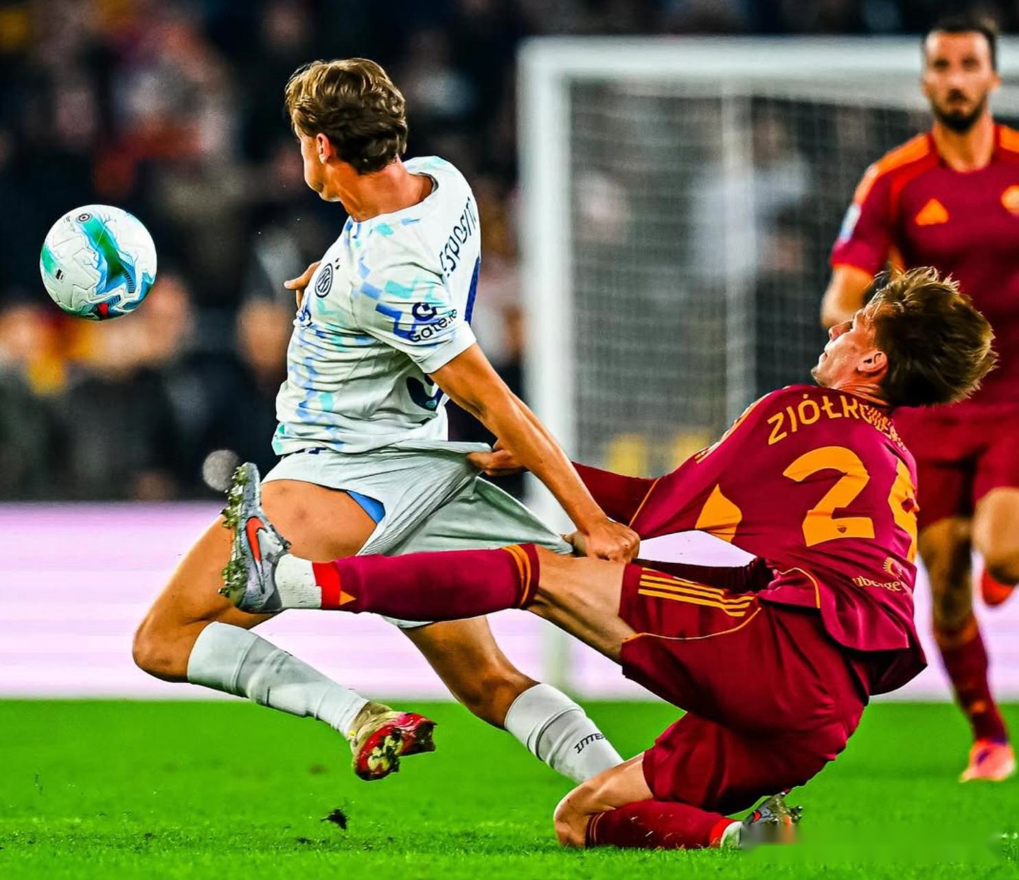 如此变阵的目的显然是加强防守,实际效果证明,部分目的达到了。前61分钟实现12次打门的罗马队,在国米变阵后,一度20多分钟都无法捞到打门机会,这段时间蓝黑军撑住了,是拿下3分的关键。